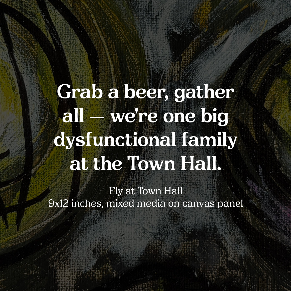 Cheeky poems pair with artworks to represent the cult-like values corporations implement — to brainwash their employees into a false sense of closeness, not unlike a dysfunctional family. Poems aim to reveal the manipulative tactics and materialistic mindsets harnessed across members within the company structure.